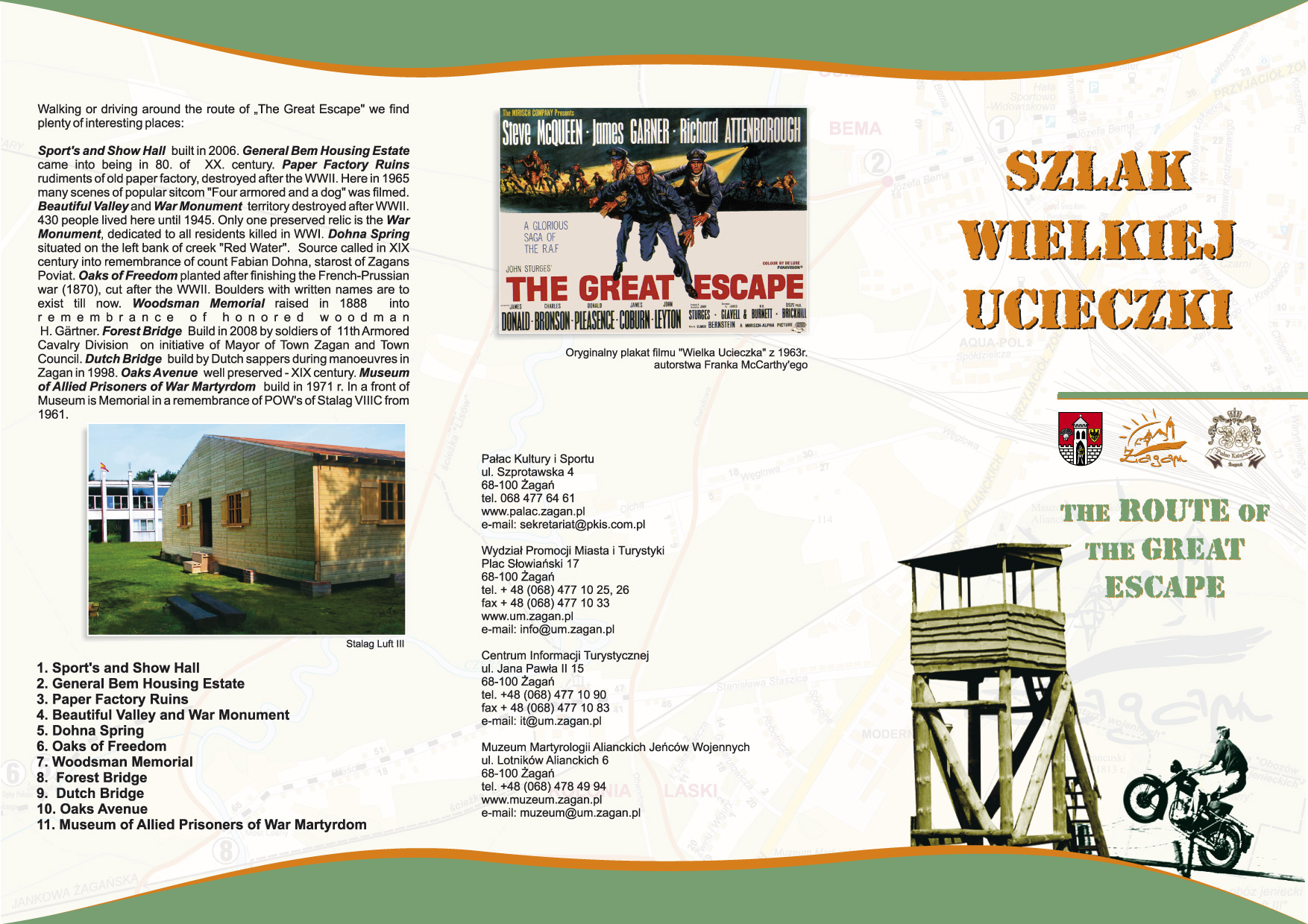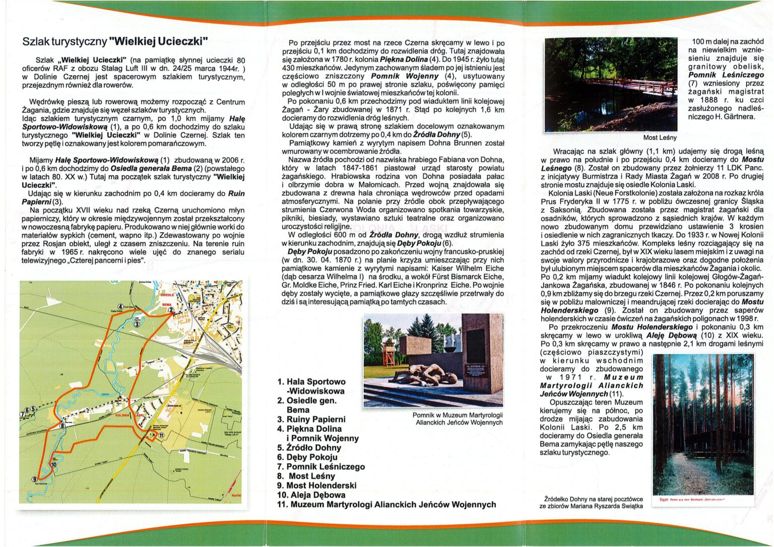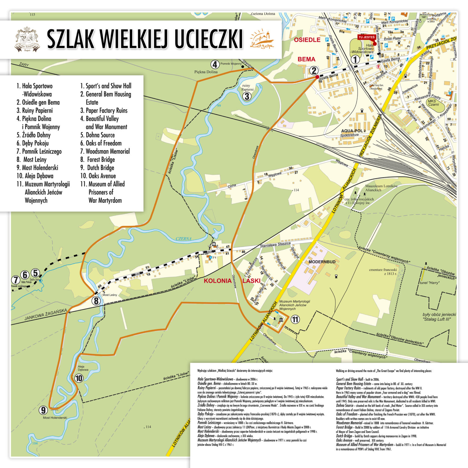- Szlak wielkiej ucieczki tworzy pętlę rozpoczynającą się i kończącą na terenie Muzeum Obozów Jenieckich w Żaganiu.
