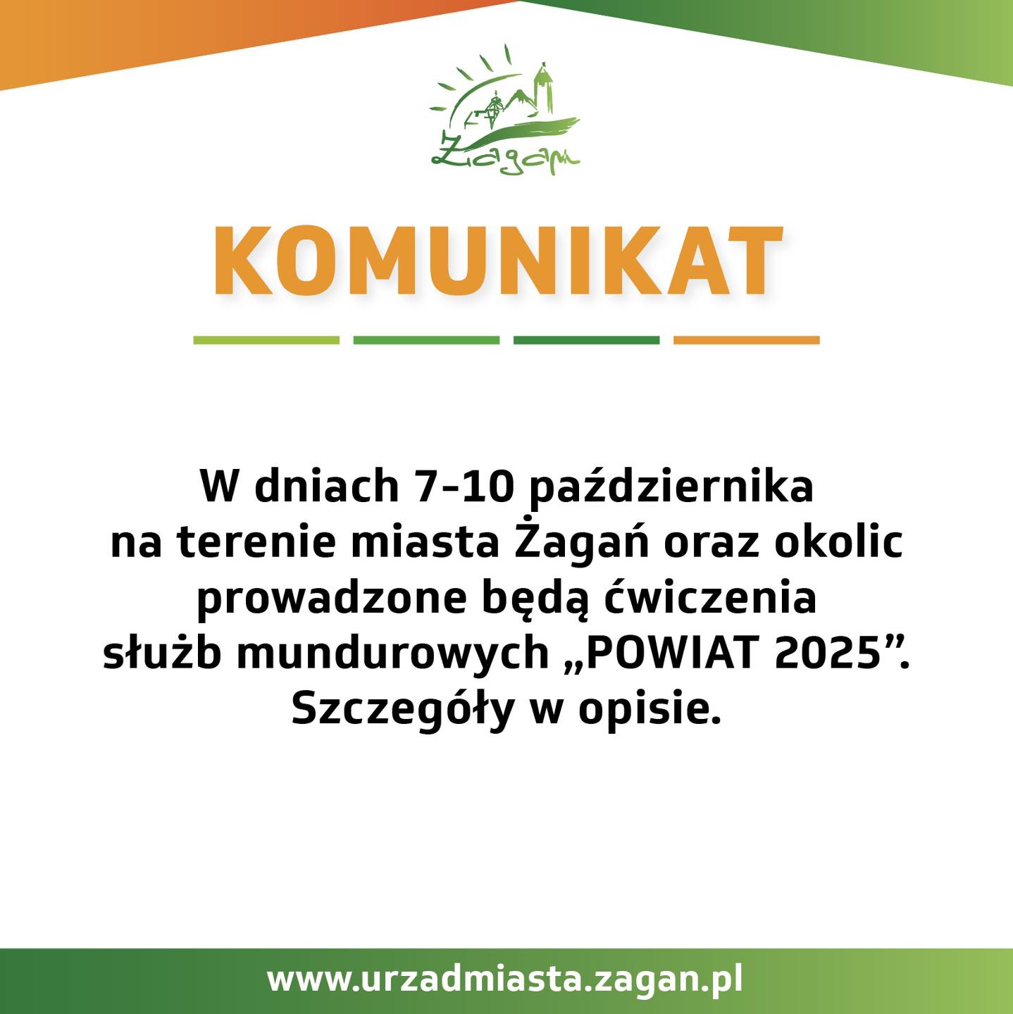 W dniach 7–10 października na terenie powiatu żagańskiego prowadzone będą ćwiczenia „POWIAT 2025”, w których udział wezmą wszystkie służby mundurowe oraz wojsko.