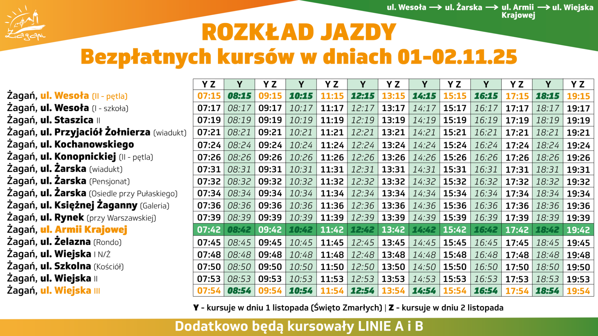 Termin obowiązywania: 1–2 listopada 2025 r. (sobota–niedziela)