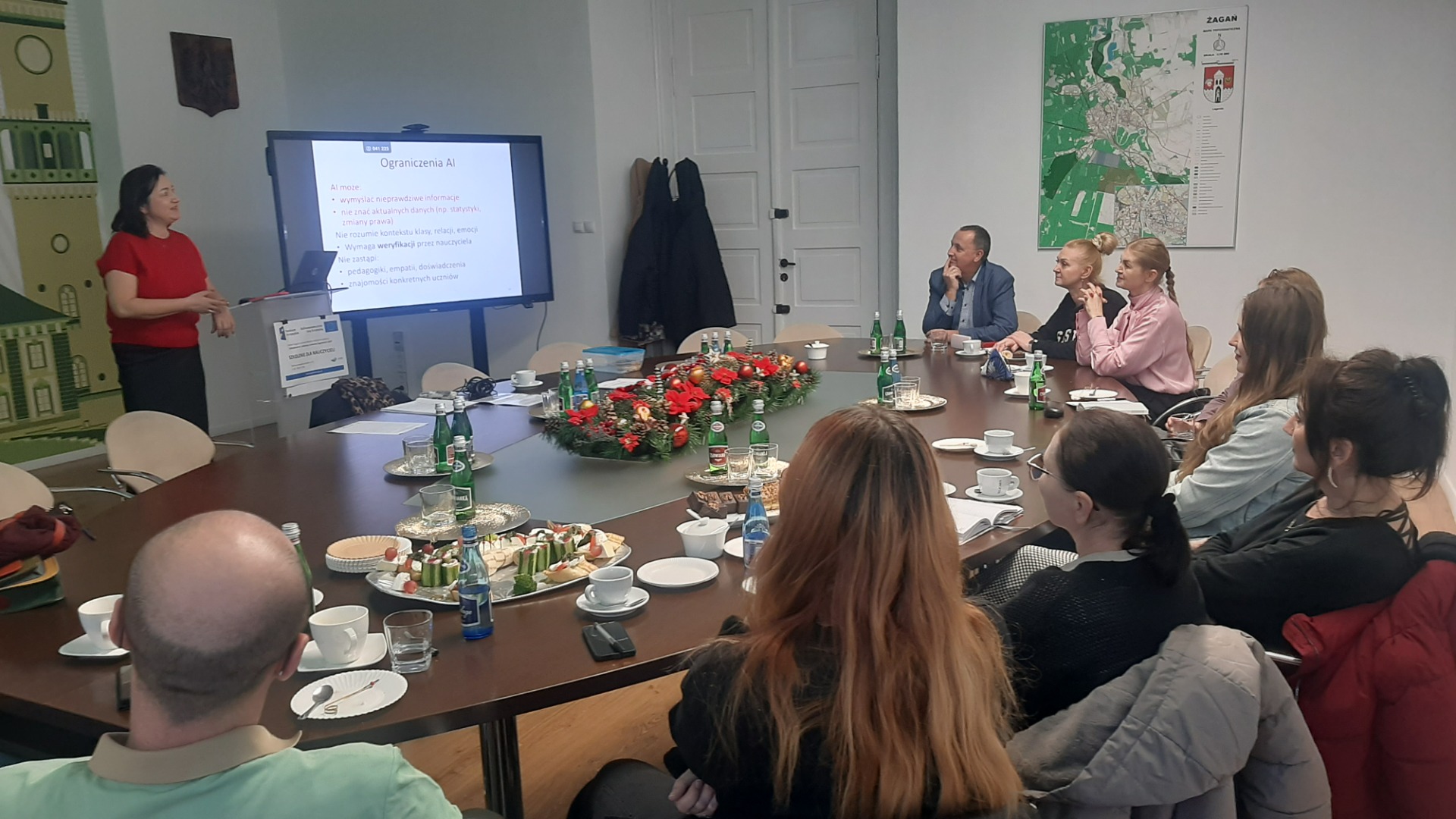 W dniach 8-11 grudnia br. żagańscy nauczyciele szkół podstawowych wzięli udział w szkoleniu Cyfrowa szkoła 4.0 – nowoczesne technologie w dydaktyce – m.in. narzędzia AI w pracy nauczyciela, wykorzystanie platform edukacyjnych i generatorów treści a także bezpieczeństwo cyfrowe i ochrona danych w edukacji.